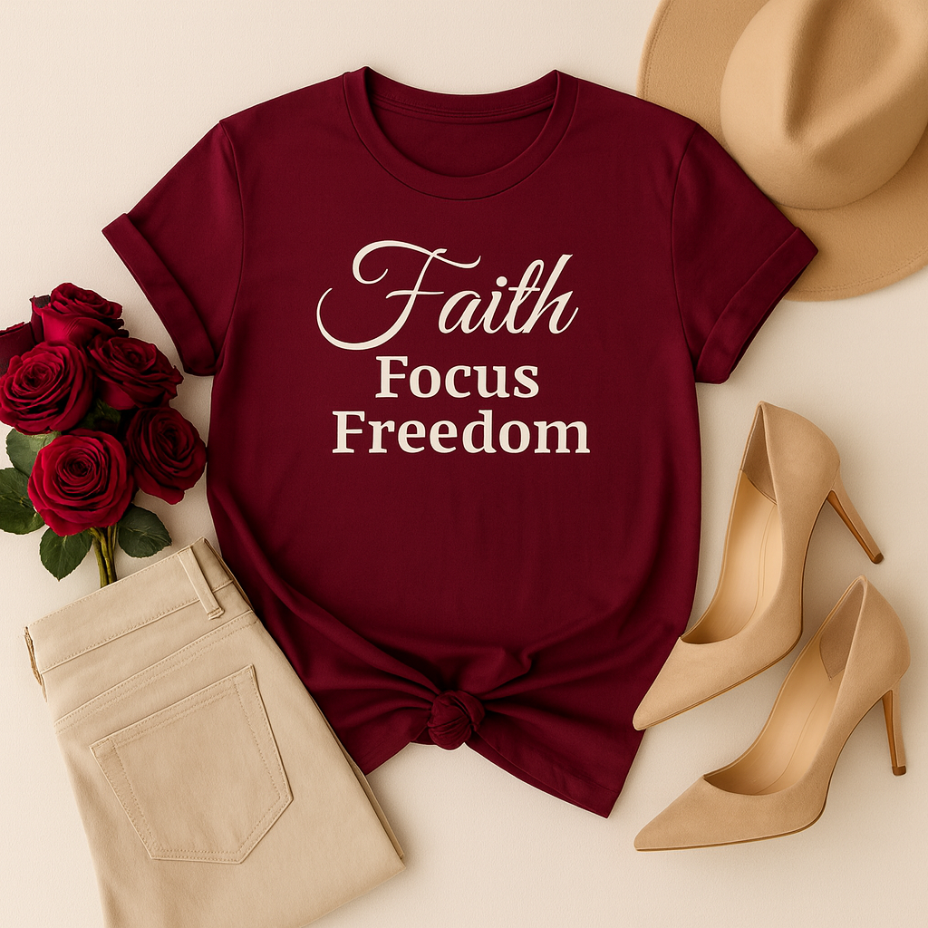 Faith • Focus • Freedom Tee — Victory Wine Edition